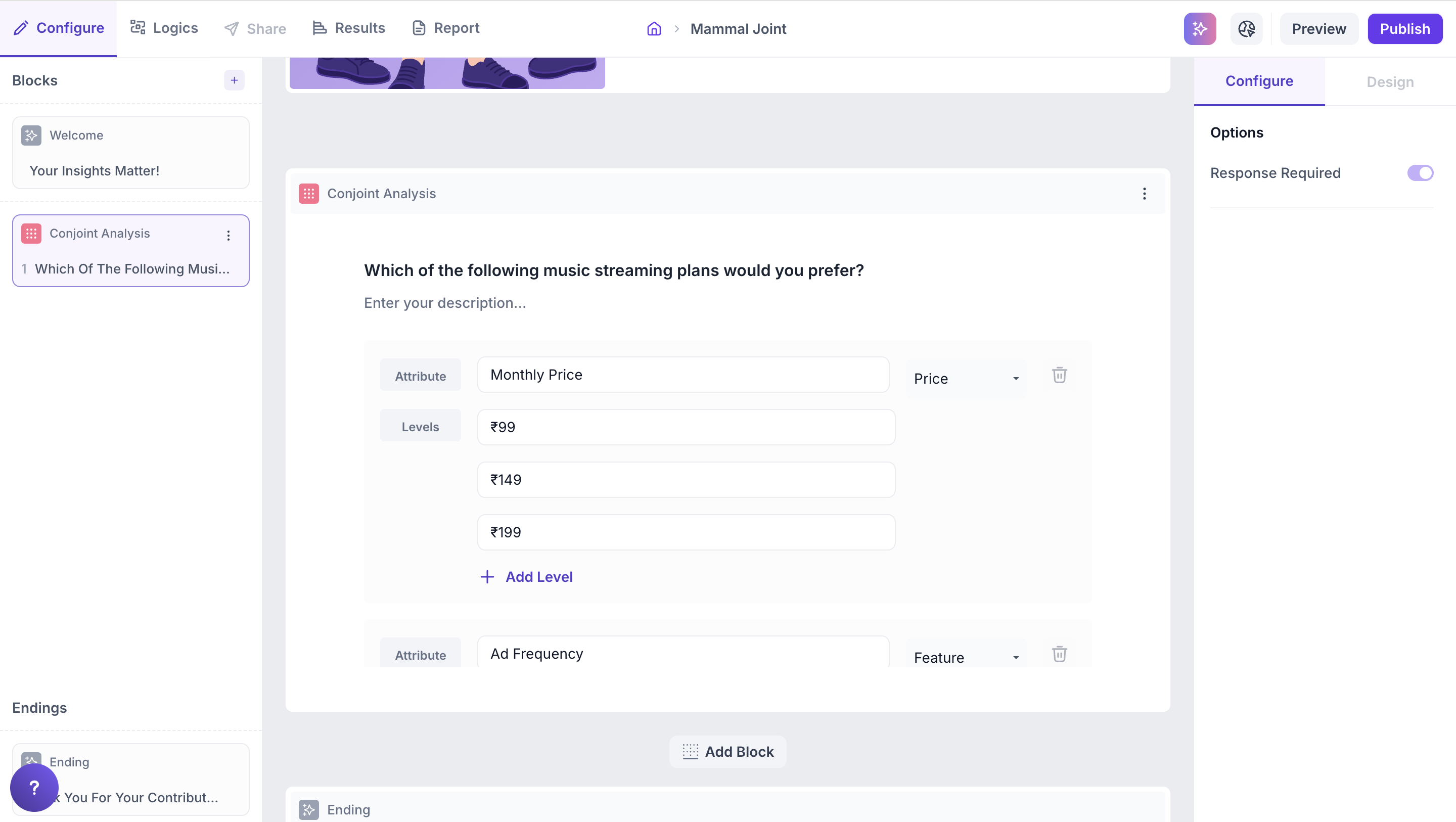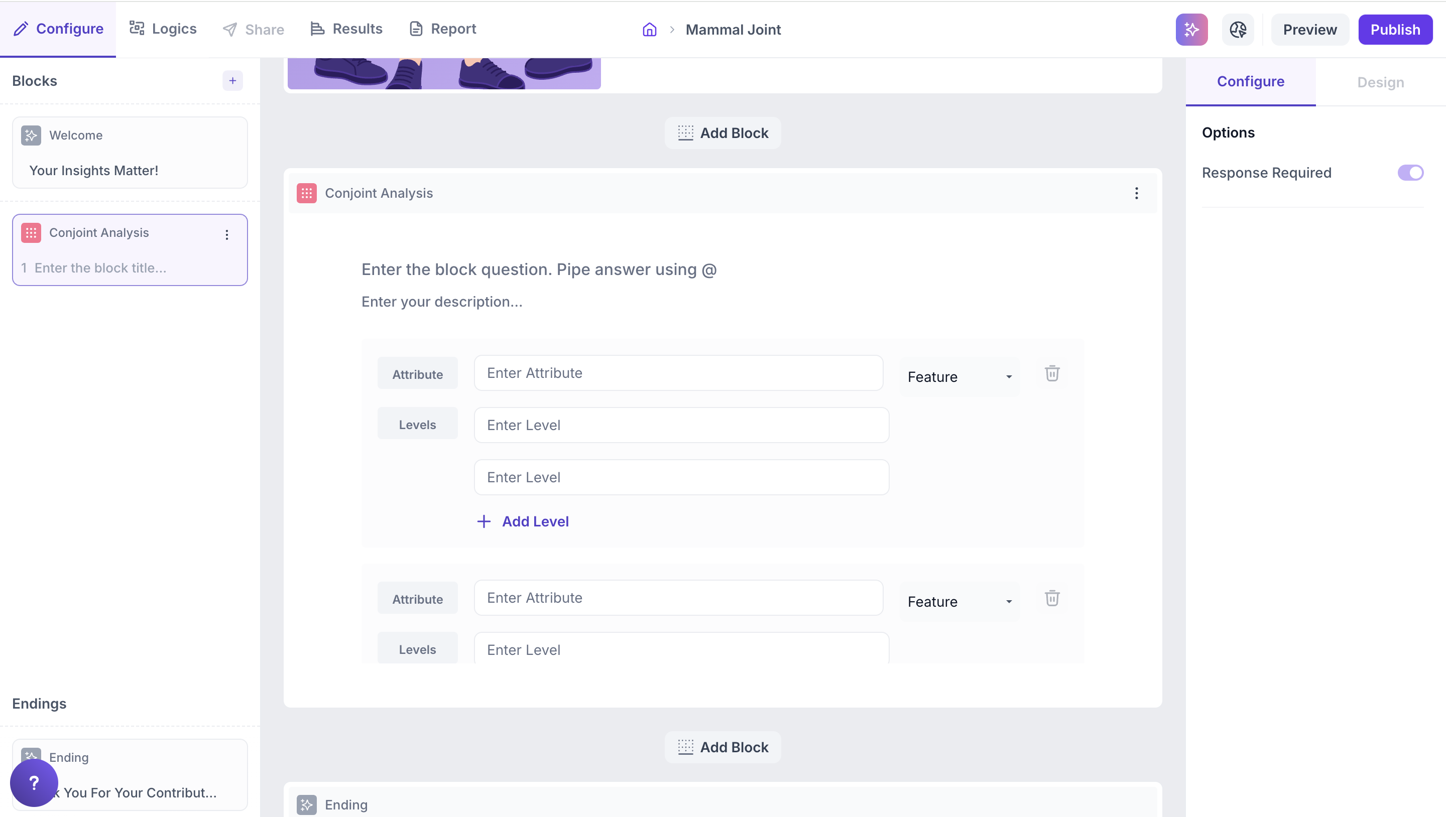 2. Add a Conjoint block from the question types.
