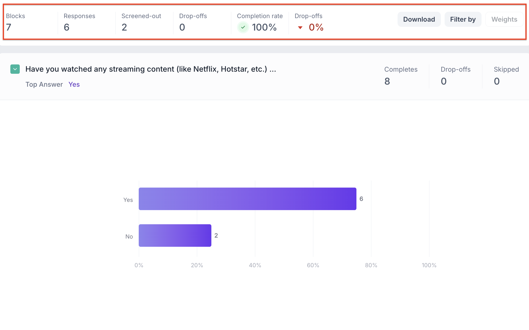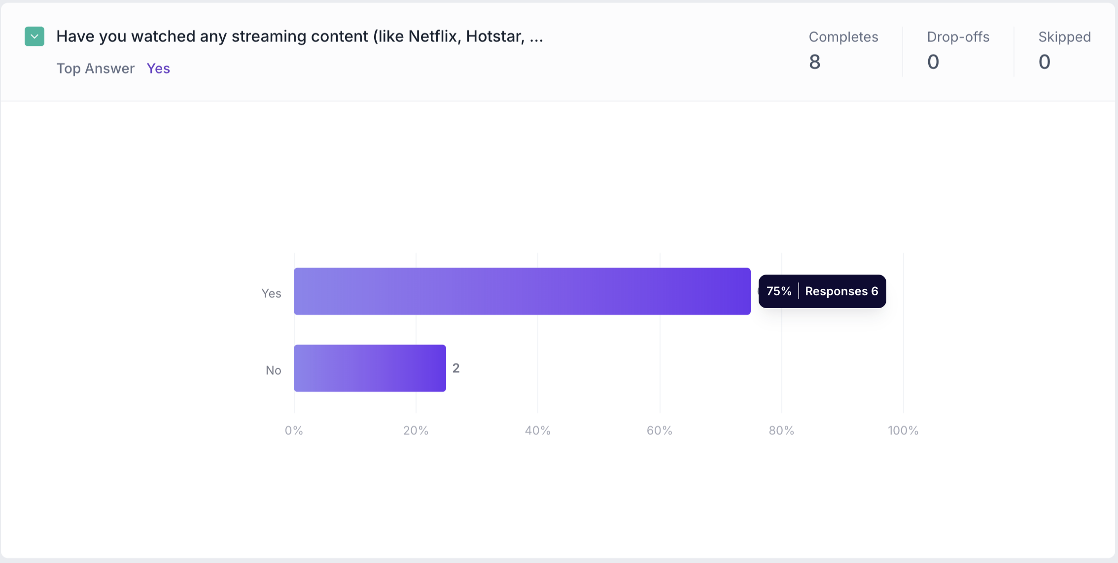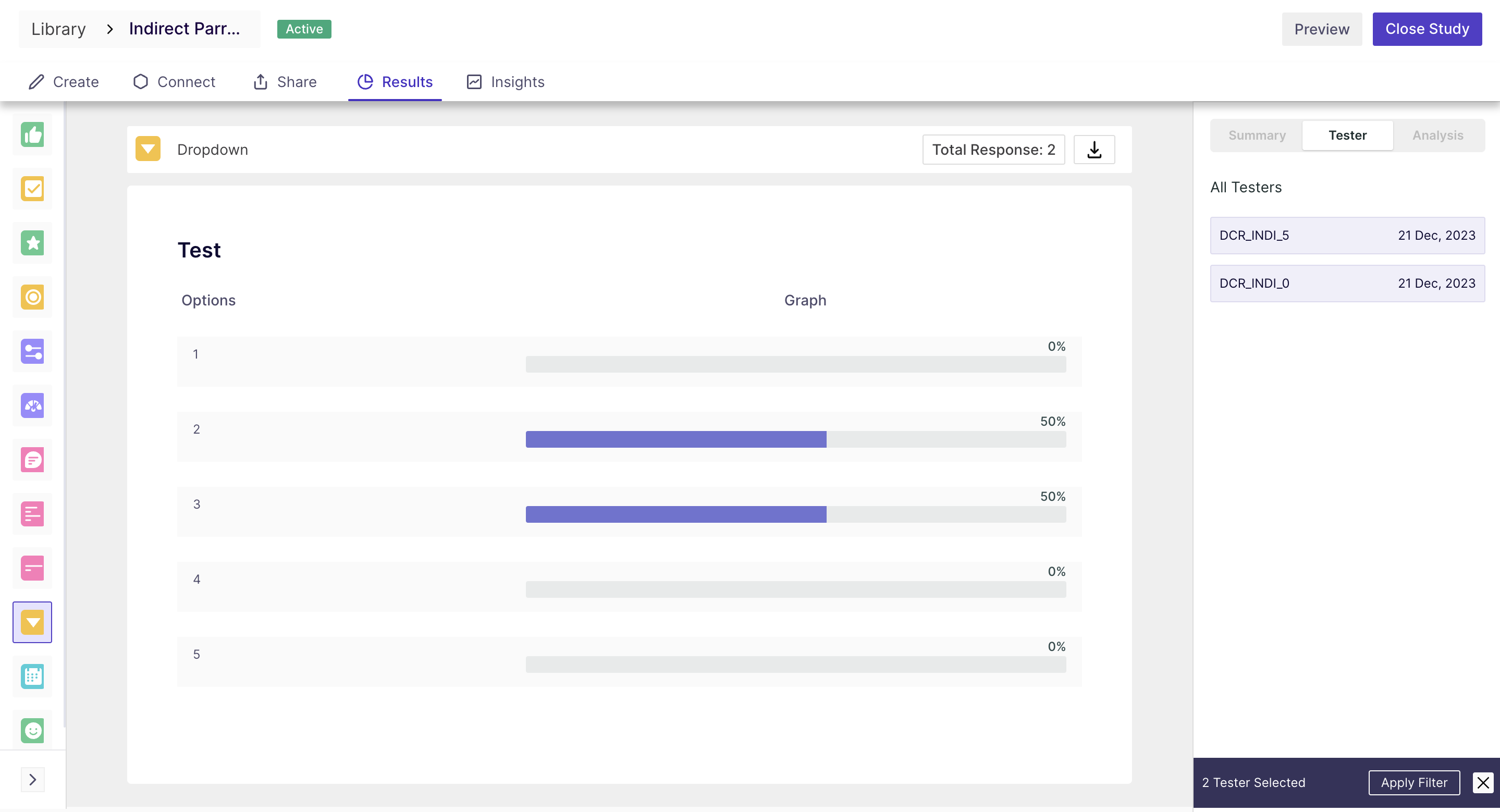 Once your study is live and responses are collected, you can view the results of the Dropdown question block in a visual and insightful format.