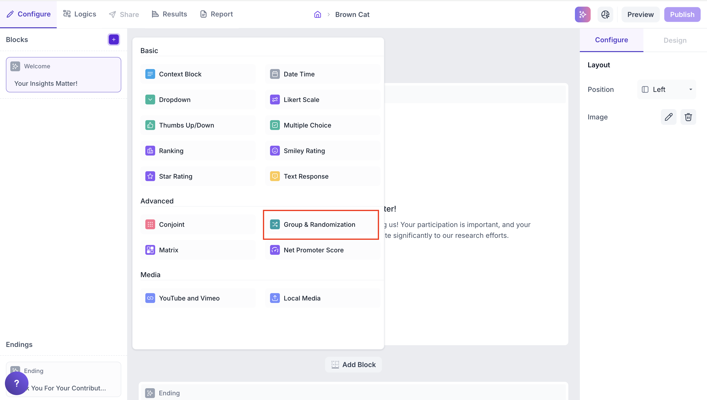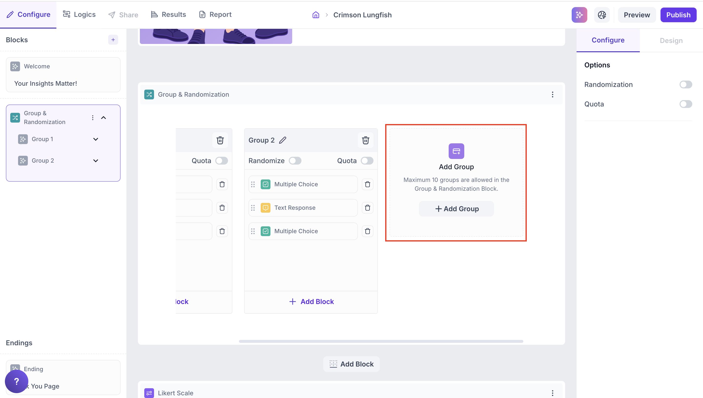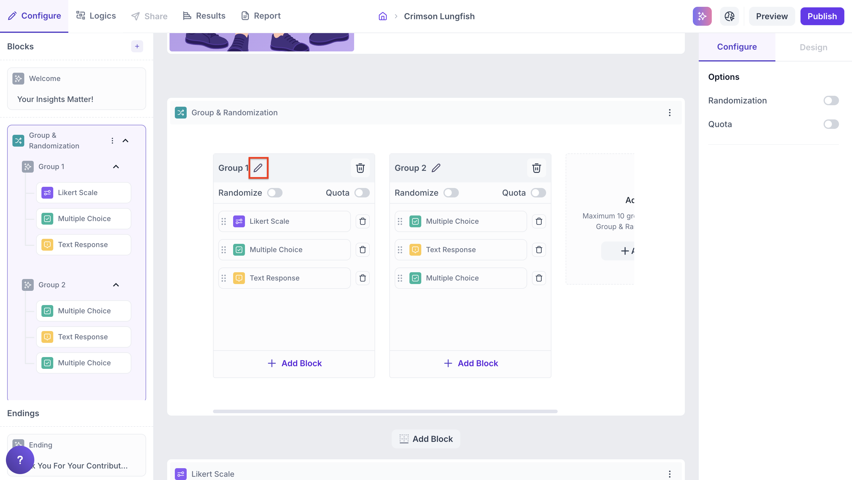 - Enable Block Randomization - Shuffle the order in which blocks appear for respondents in that group.