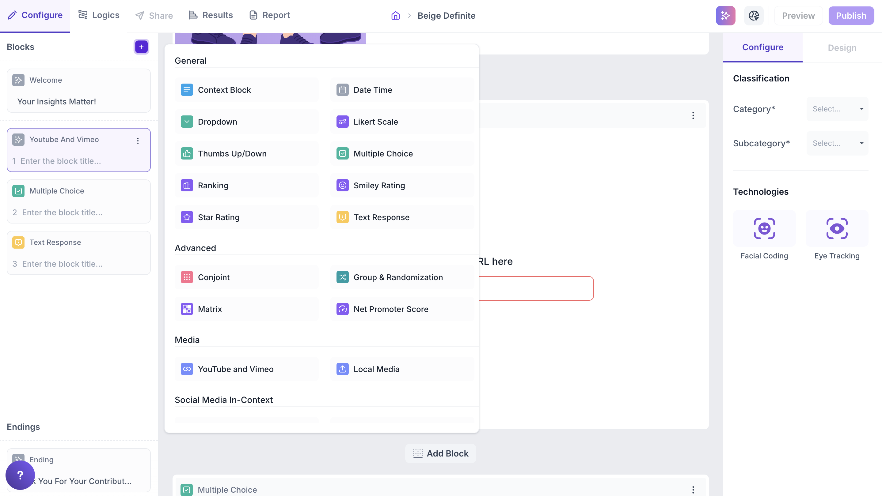 In this article, you'll learn how to build a quantitative study using Media Blocks from uploading media to customizing each block’s settings.