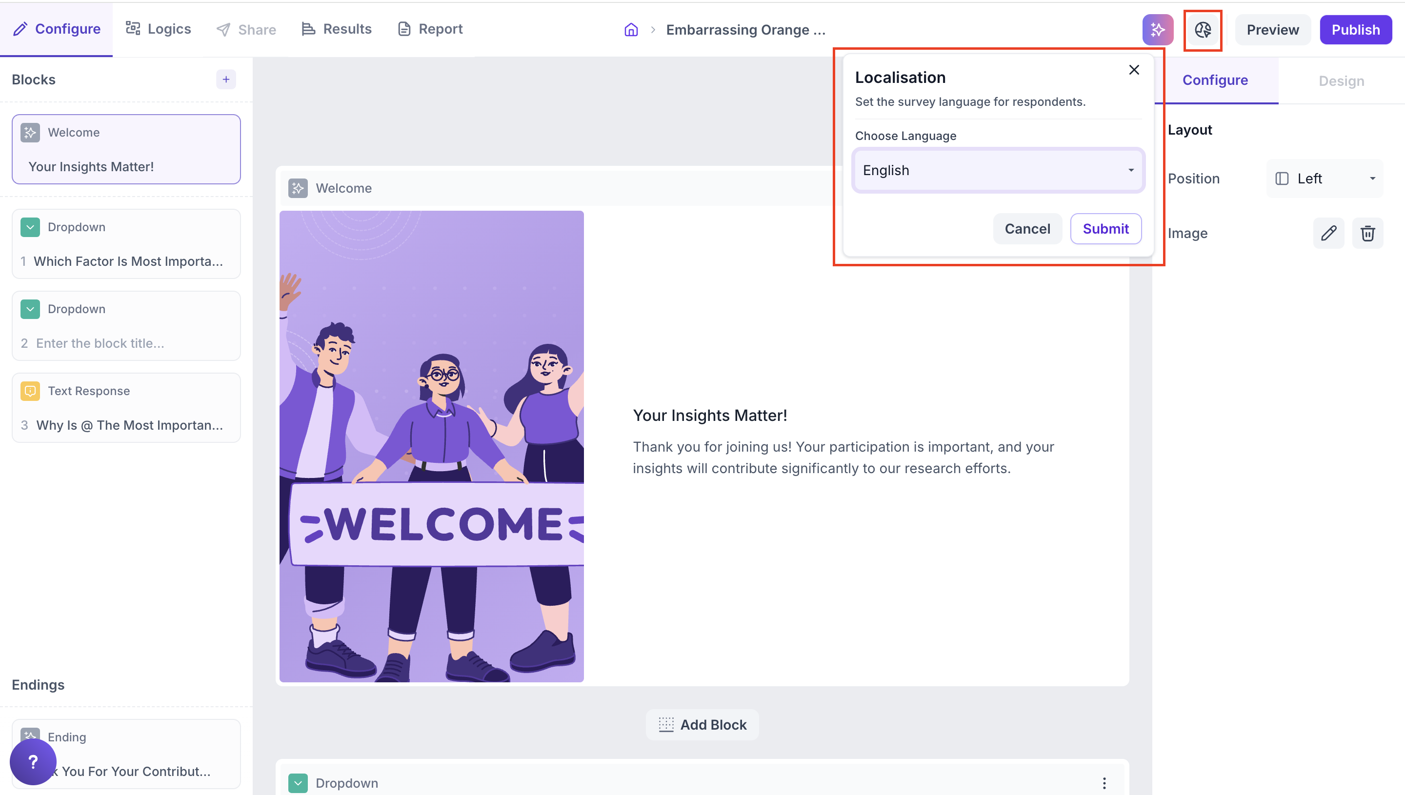 Decode supports multi-language surveys, enabling you to reach audiences across different regions with localized content.