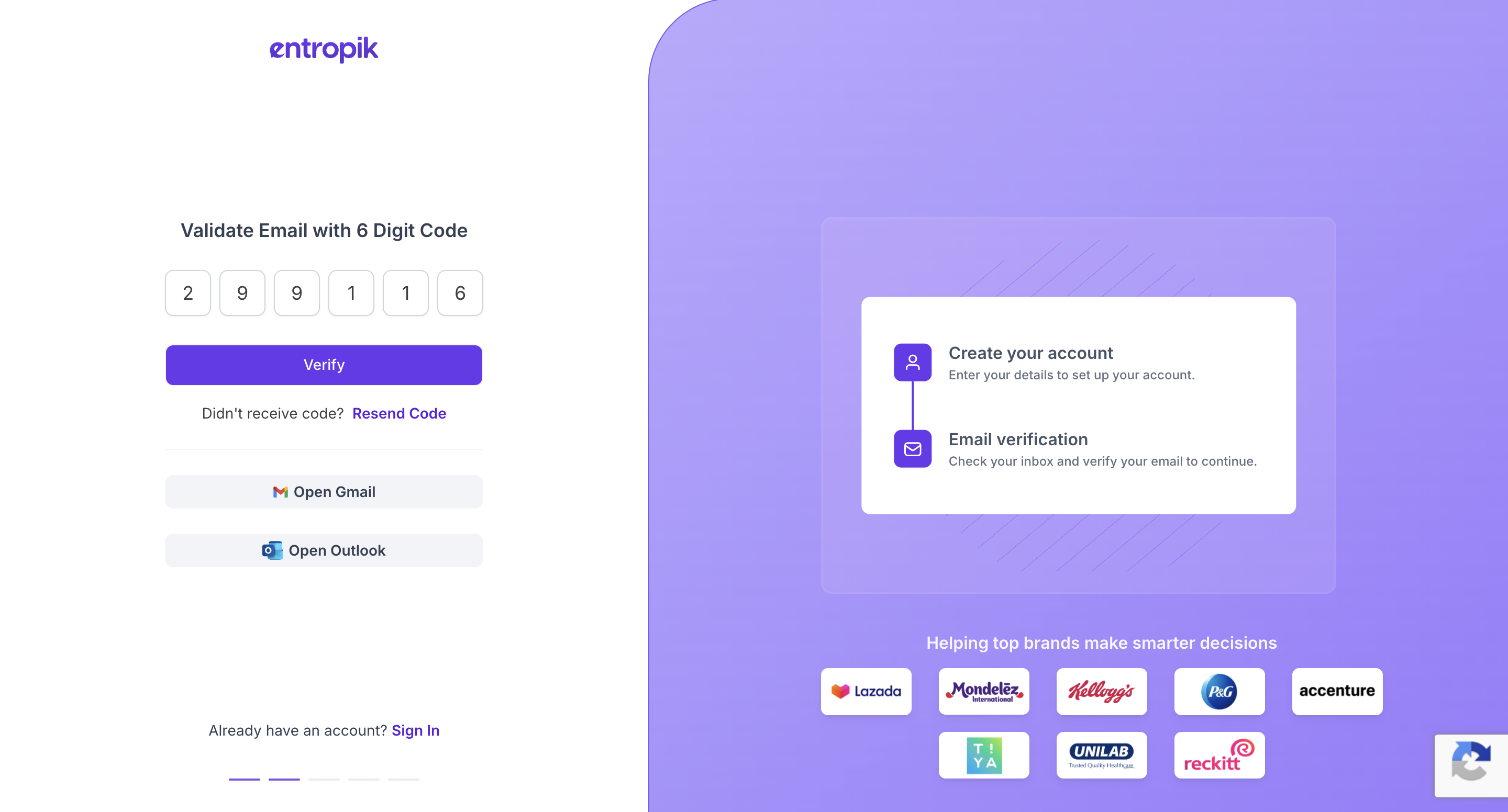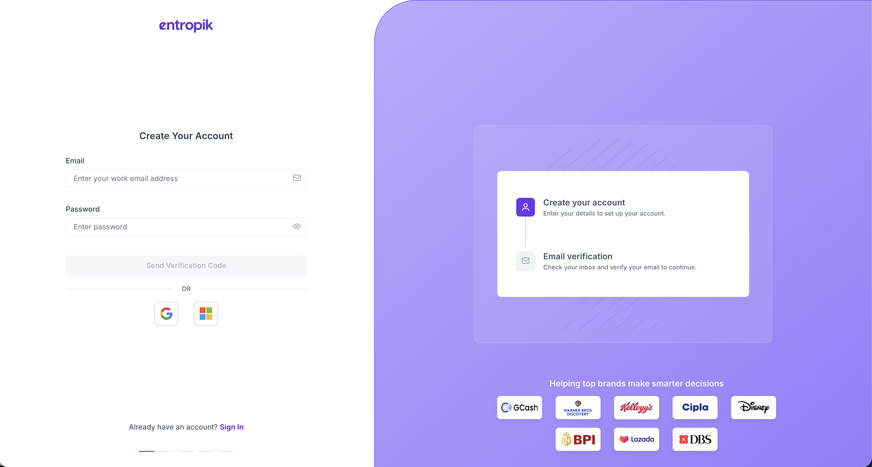 Note If you sign up using Google or Microsoft, the email verification step will be skipped. |