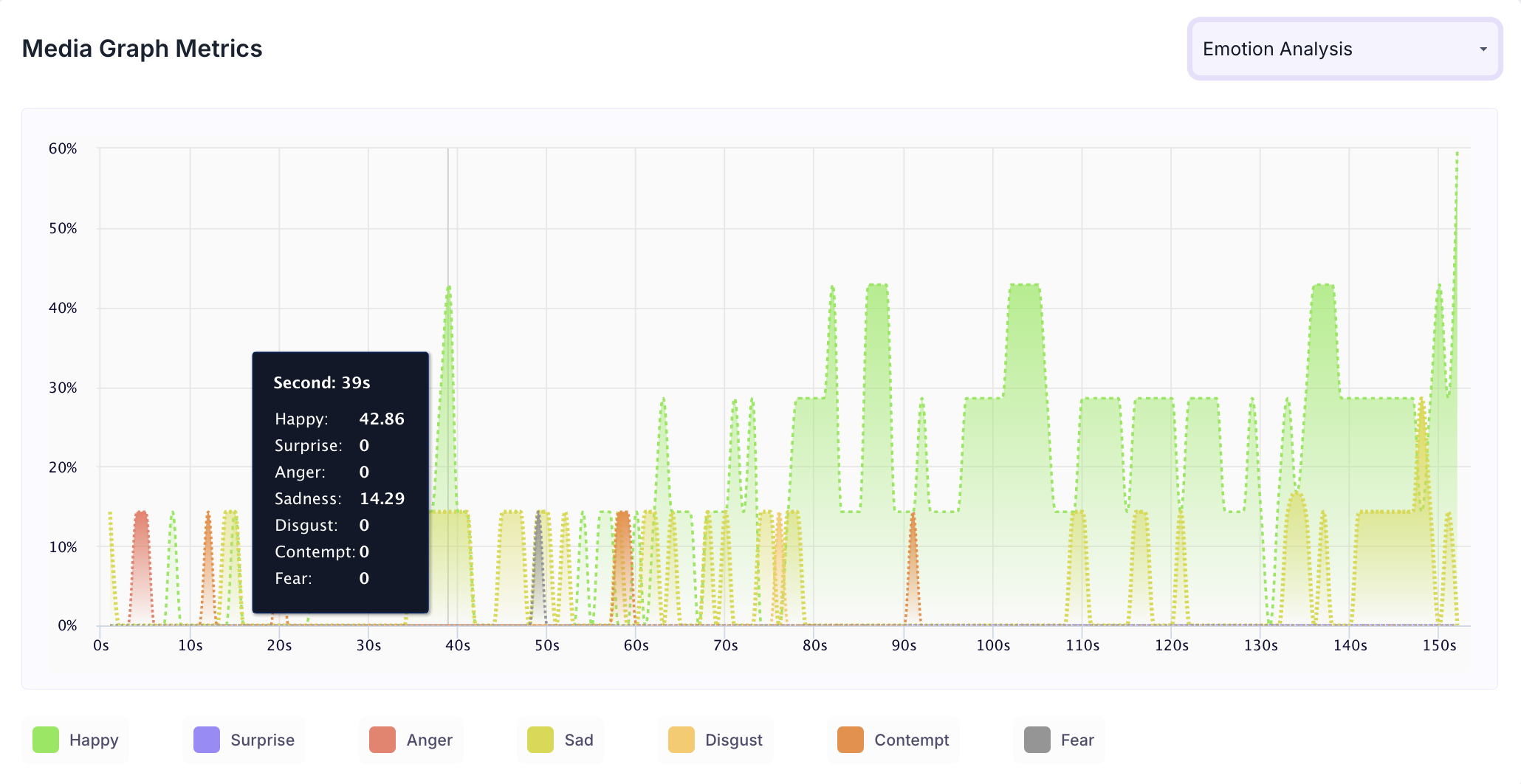 This graph visualizes real-time emotional responses, such as Happy, surprise, anger, and more.