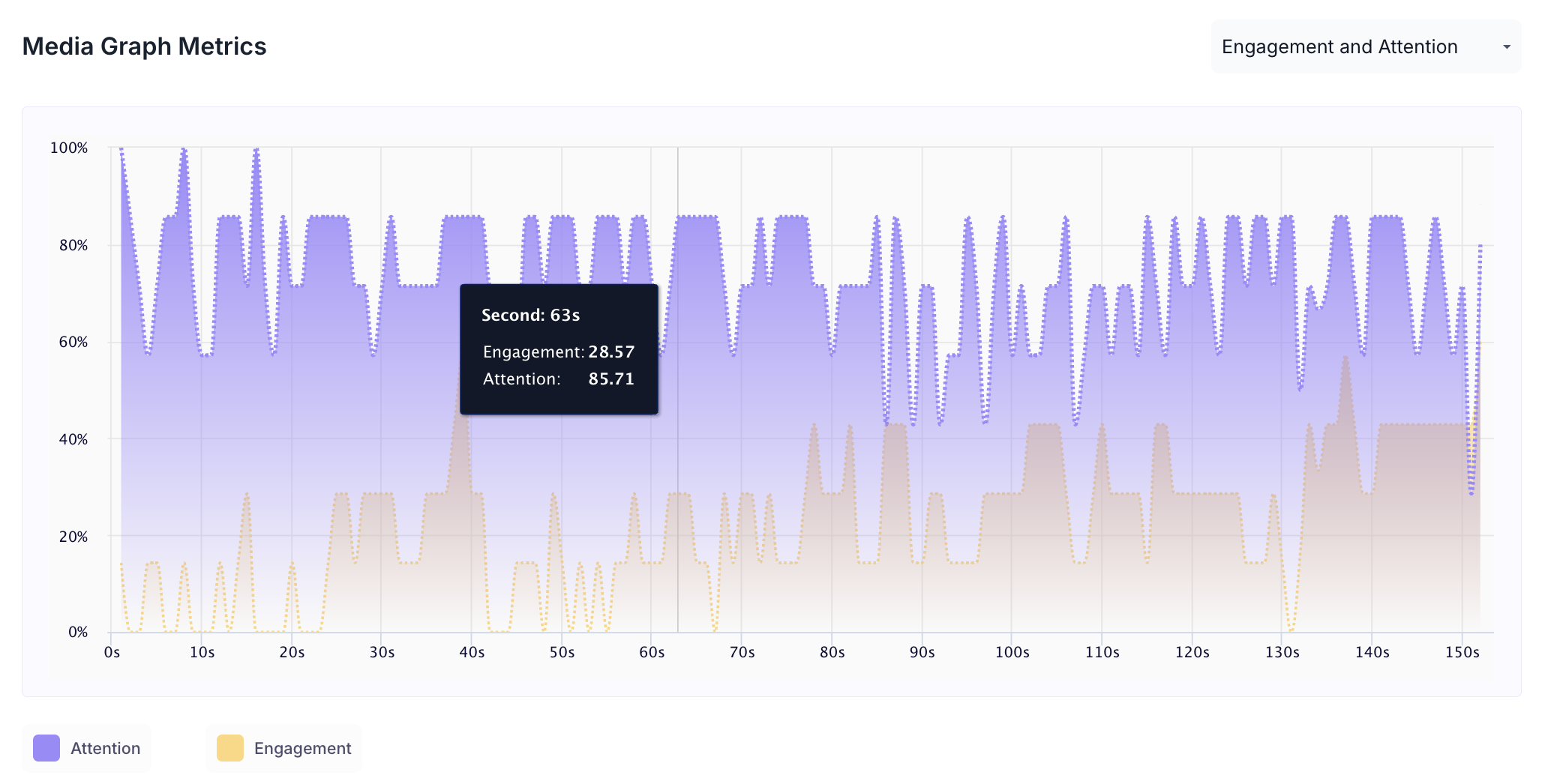 Measures the emotional intensity triggered by the media each second, based on facial expressions. High engagement reflects emotionally compelling content.
