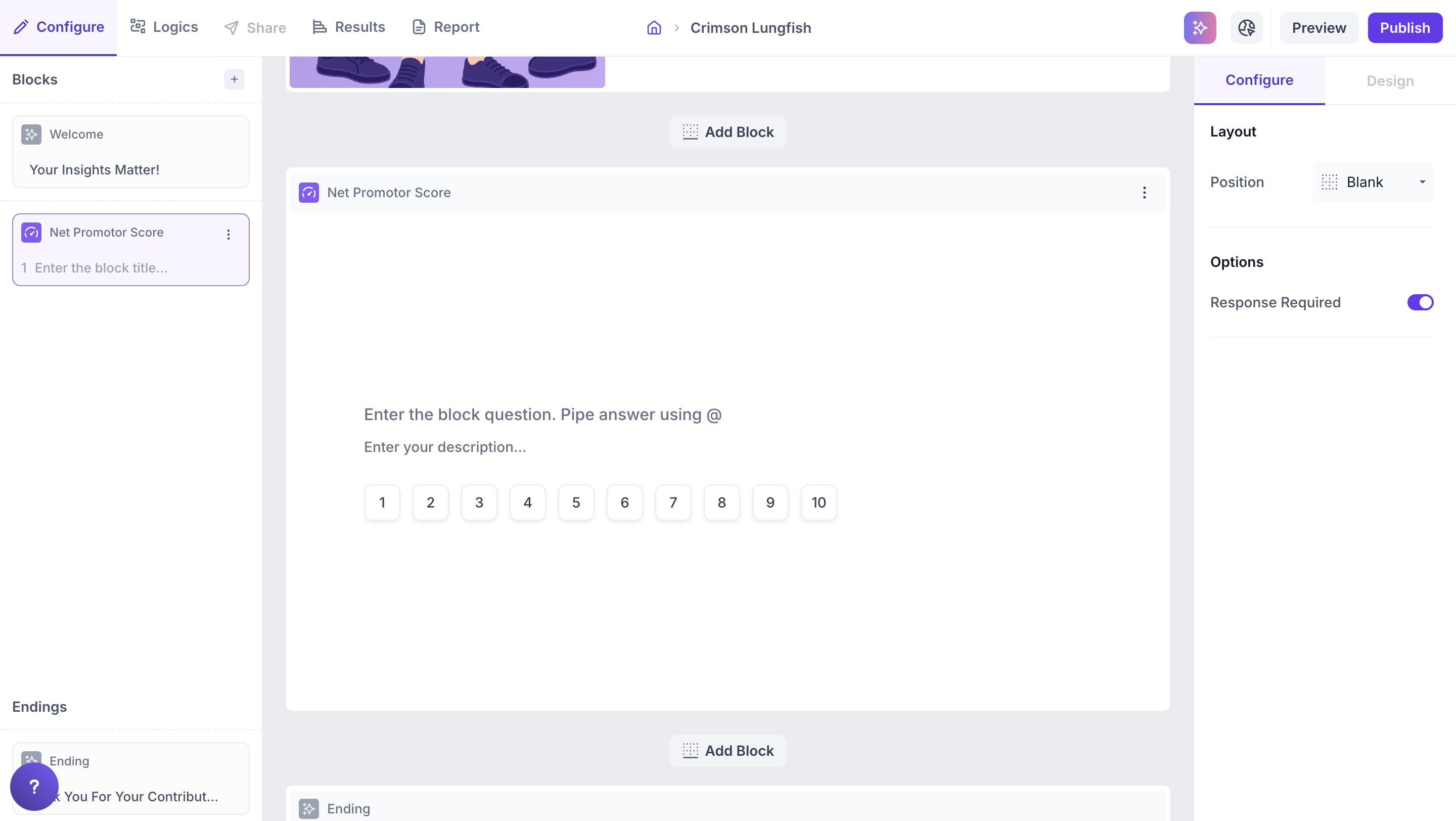 Layout: You can improve the visual appeal of the NPS block by adding an image such as a product shot or brand logo.