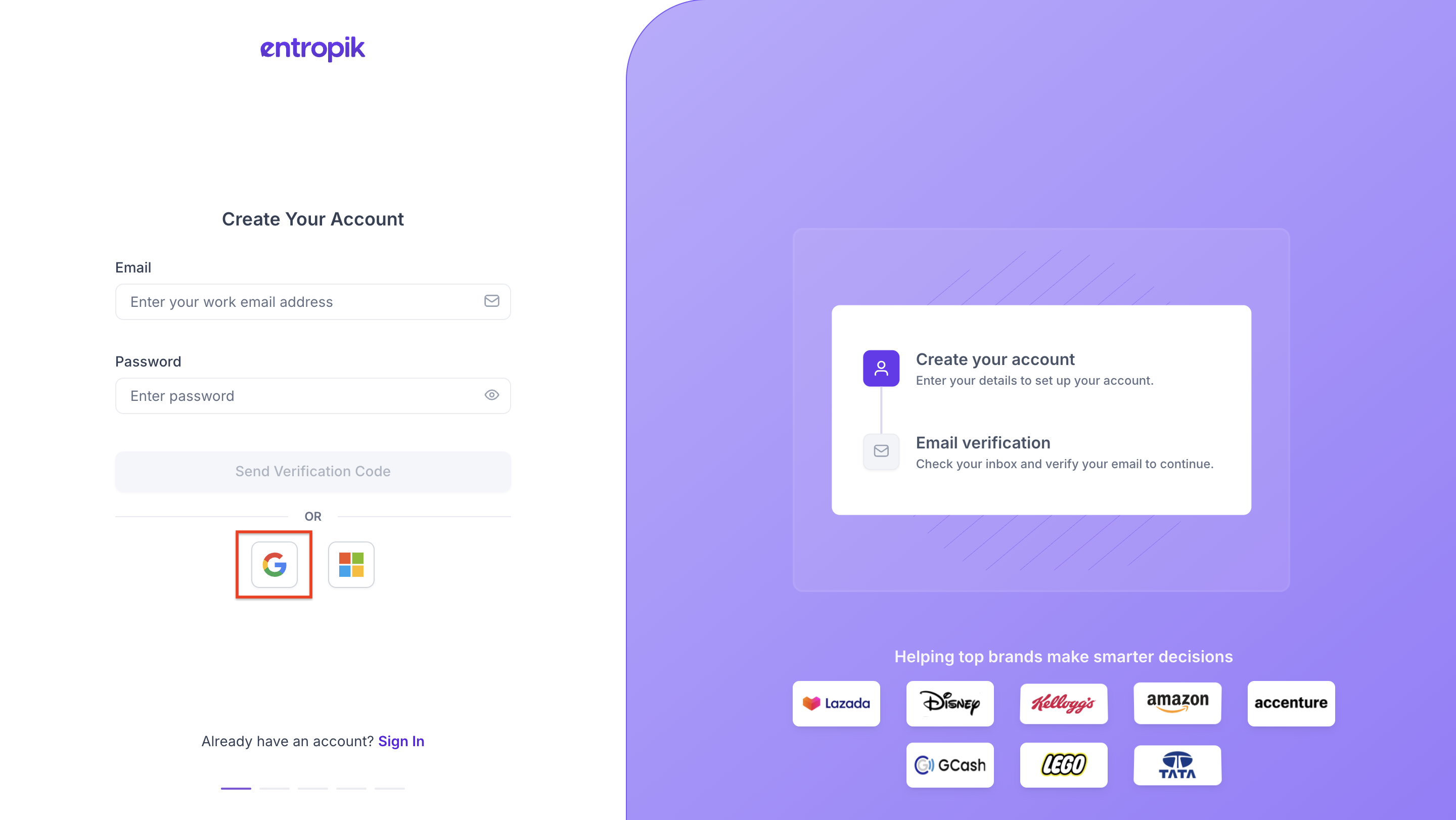 You can set up your workspace in Decode using your Email ID, Google or Microsoft account.