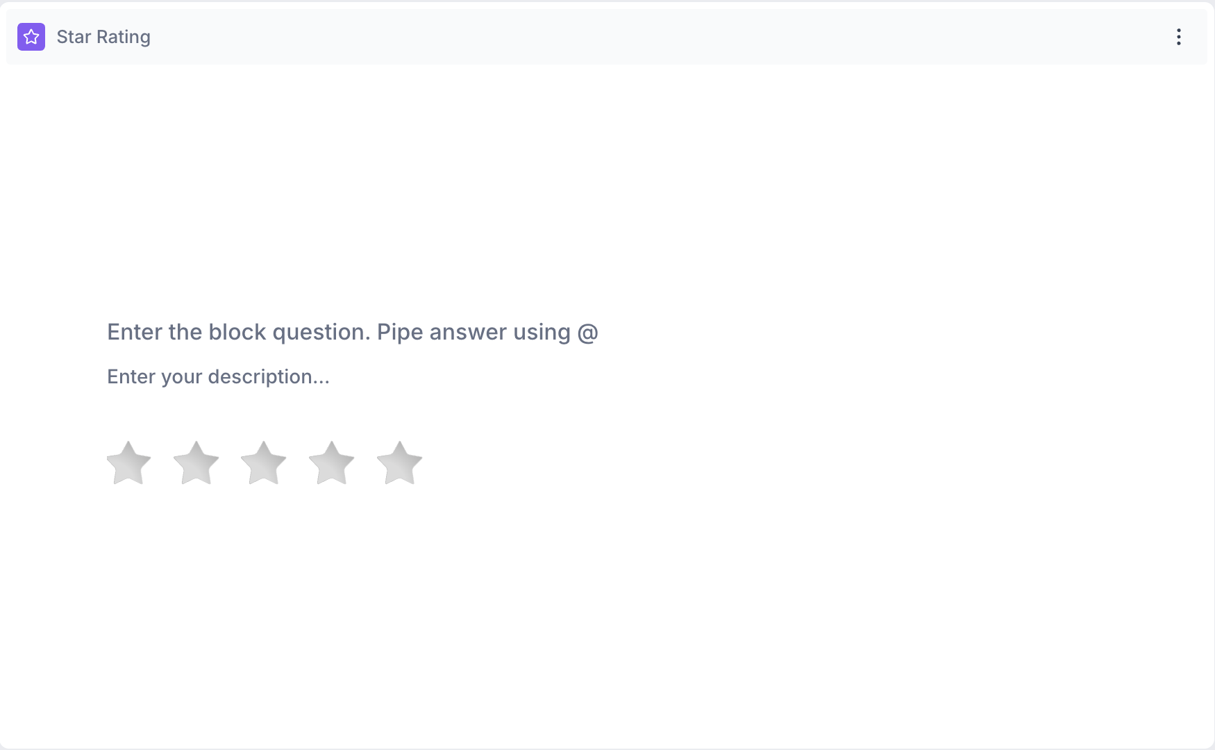 9. Star Rating Question ⭐: In this question type, respondents provide a rating by selecting stars in the answer block, typically up to 5 stars. This format is commonly used in consumer research to measure satisfaction, perceived quality, or overall experience with a product or service.