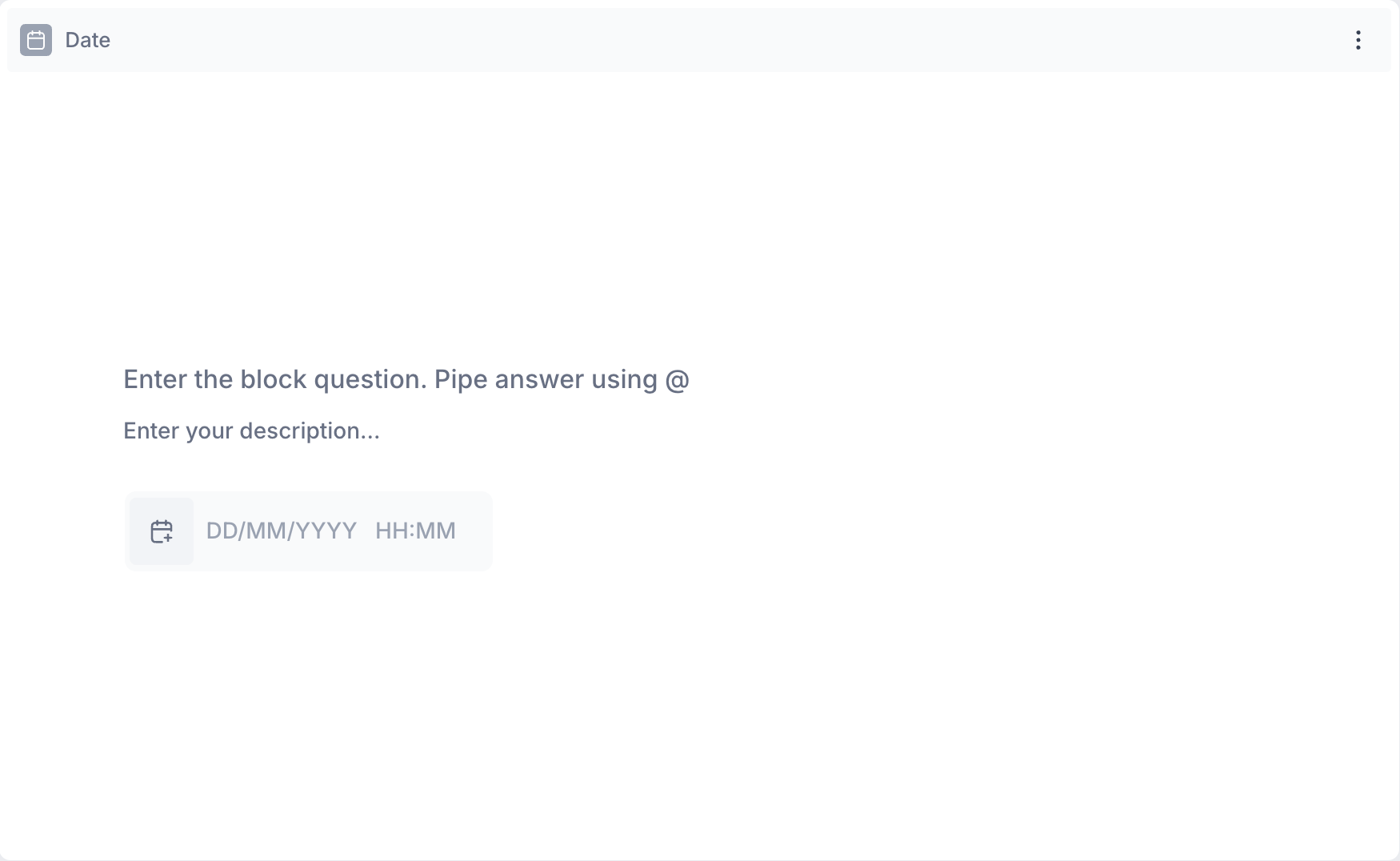 2. Date Time 📅: In this question type, respondents can select a date and time using the calendar and time picker, or manually enter their response in the input field.