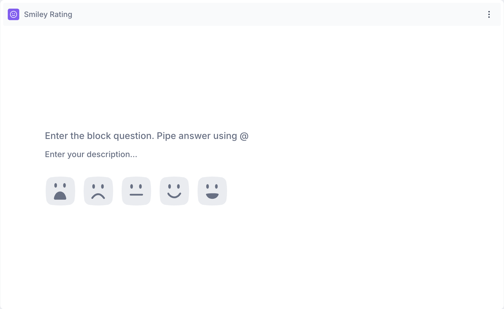 8. Smiley Rating 😊: In this question type, respondents provide feedback using a 5-point smiley rating scale. Each smiley represents a level of sentiment, ranging from negative to positive. This format is commonly used in consumer research to measure emotional reactions, satisfaction, or overall sentiment in a quick and visual way.