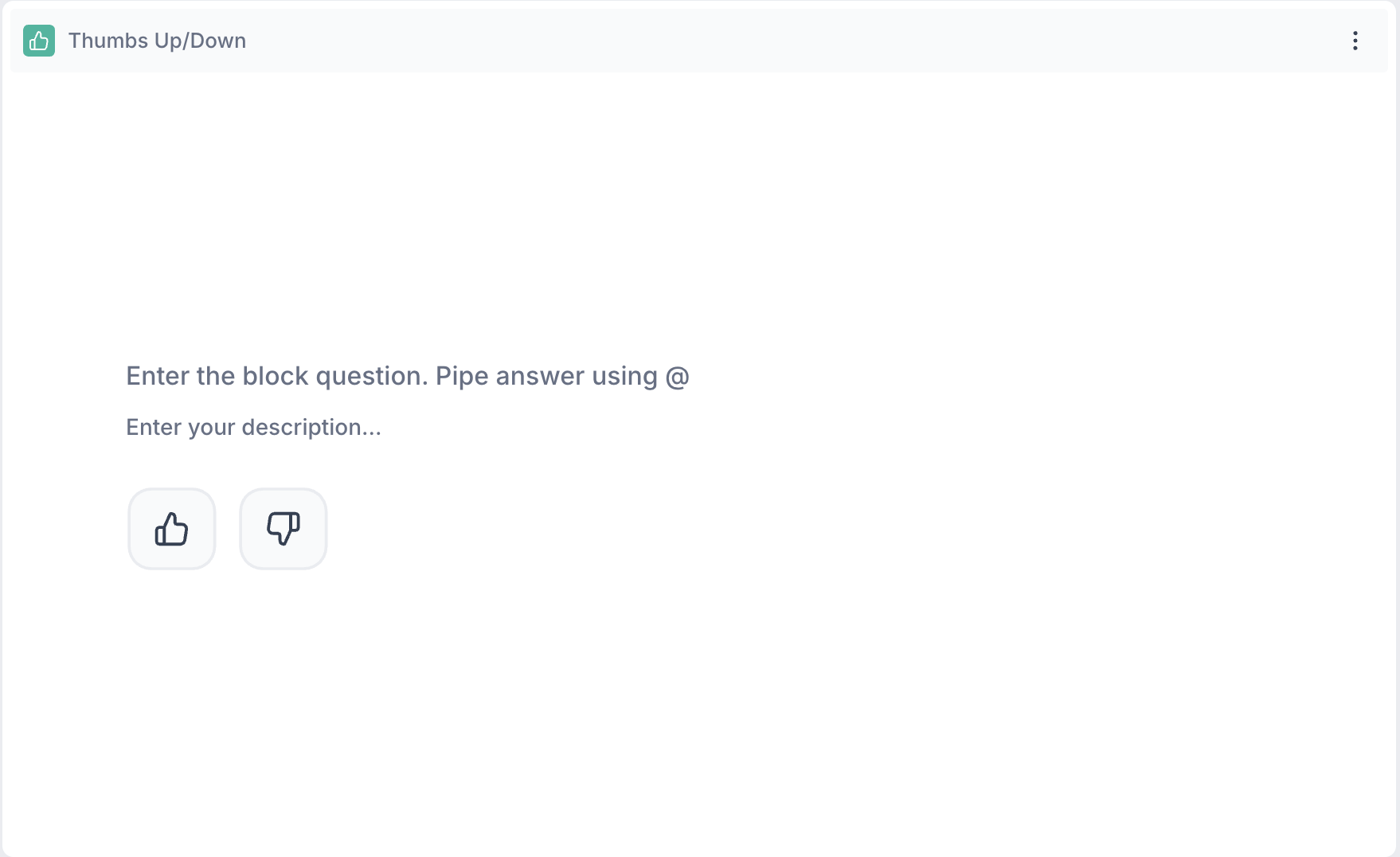 5. Thumb Up/Down 👍👎 : In this question type, respondents indicate whether they like or dislike an item by selecting a thumbs-up or thumbs-down icon. This question type is commonly used in consumer research to understand product appeal, interest, or preferences.